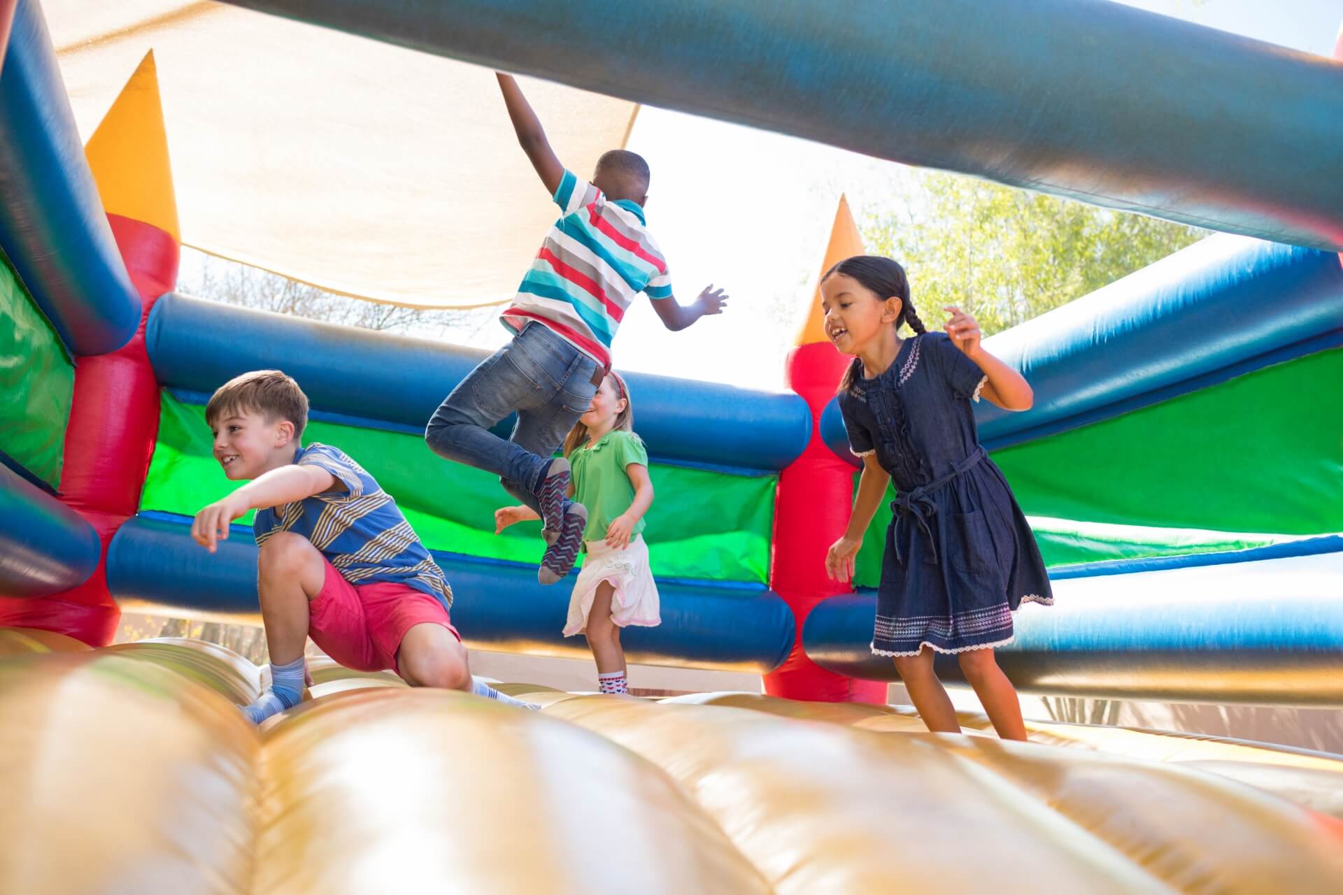 Podstawowym elementem każdego placu zabaw jest przestrzeń do skakania, która sama w sobie jest gwarancją frajdy. Wiele modeli z tej kategorii jest wyposażonych w zjeżdżalnię. Niektóre propozycje mają także ściankę wspinaczkową i tor przeszkód. Dmuchane place zabaw to atrakcje łączące kilka możliwości zabawy w jednym dmuchańcu.